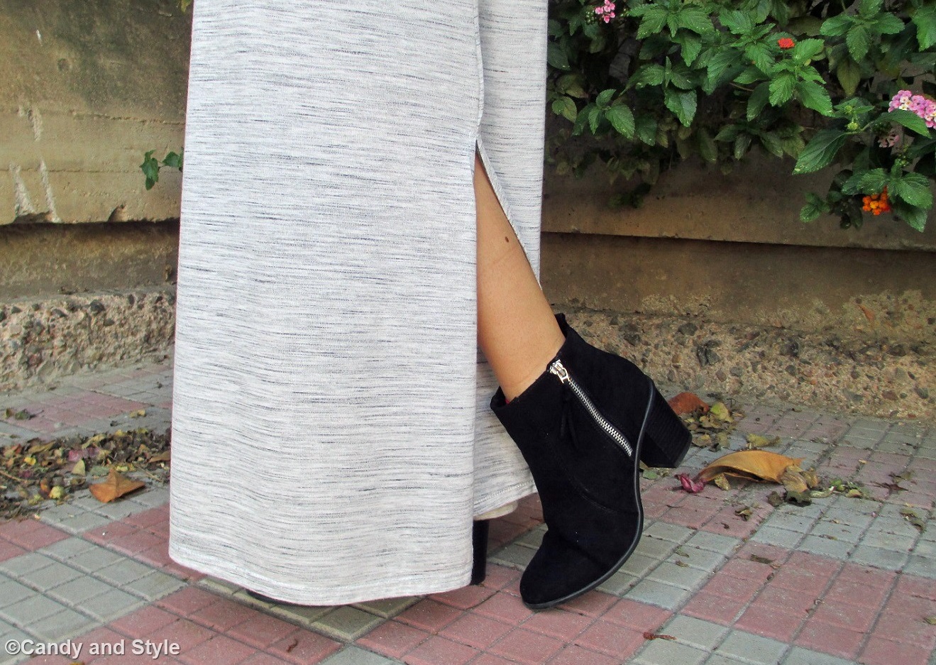 This outfit may be simple but is so perfect and elegant! I just love that long beautiful skirt and I adore those cute boots peeking out of the slit! Your little 'L" necklace is the sweetest finishing touch!
